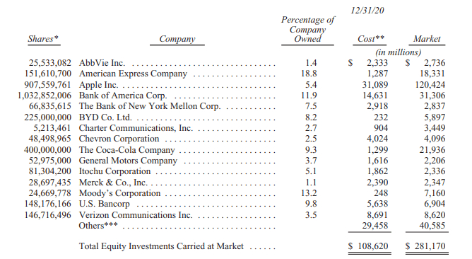 我们的投资成本是360亿美元。从那以后,我们都享受了定期股息,平均每年约7.75亿美元,而且在2020年,通过出售我们头寸的一小部分,我们还获得了额外的110亿美元。