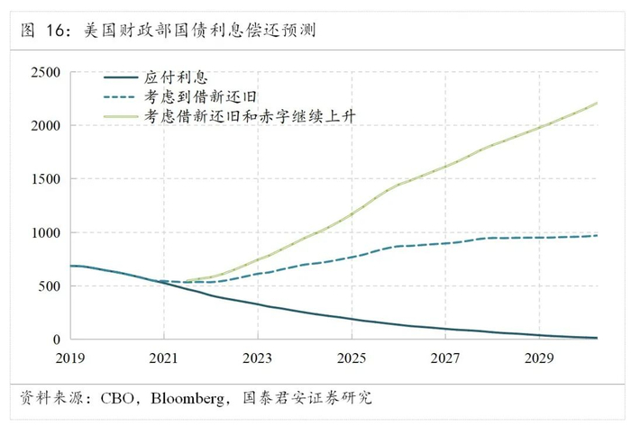 假如美联储选择正常化货币政策的路径,那么可以通过分析美财政部的融资利息支出,在一定程度上提供一些中长期利率的启示。