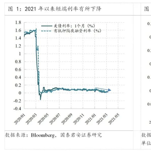 美国财政部将存放在美联储TGA账户的资金转存银行,将阶段性压低短端利率价格,造成货币市场流动性泛滥,挤压回购市场活跃度,但是外溢效应或有限。根据美国财政部计划,线性外推假设下,4月底前美国财政部将每周减少766亿美元的一般账户余额,并存放至商业银行;5-6月将每周减少278亿美元的一般账户余额,转存至商业银行。假设美国财政部的常规收支计划不变,那么这笔资金将大概率保留至1.9万亿财政刺激计划通过后使用。这将对货币市场造成1-2个季度的流动性影响。