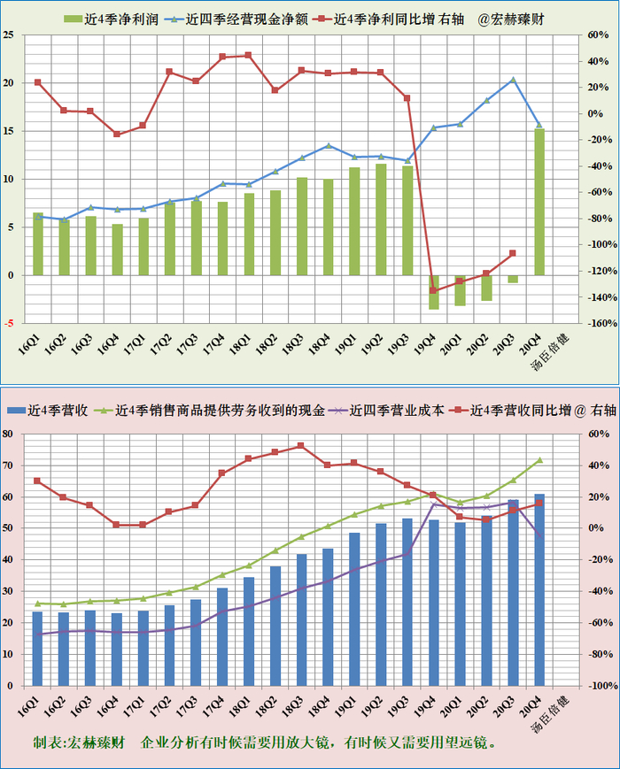滚动近四季净利润、营收及增长率趋势图