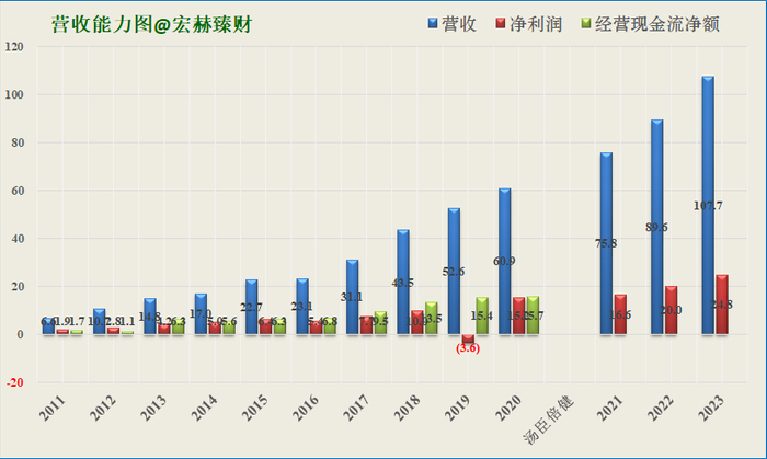 近年营业收入、净利润、现金流及未来三年预测图