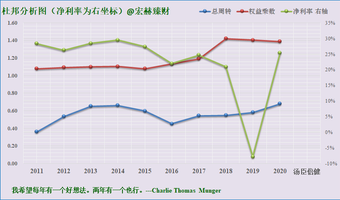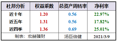 宏赫臻财建议关注未来杜邦指标趋势呈现:【低杠杆或适度杠杆(1.2-3)+周转率接近或大于1且有向上趋势+稳健增长的中高净利率>15%】