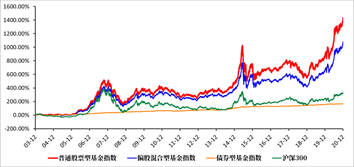 历史数据不能代表未来,但却是我们展望未来的重要参考。以偏股混合型基金为例,根据银河证券基金研究中心数据显示,截至2020年12月31日,过去15年、过去10年、过去7年和过去5年,偏股型基金(股票上下限60%—95%)(A类)业绩指数分别上涨1294.88%、196.57%、223.18%、73.68%,年化收益率均超过11%。所以说,从长期平均值上看,投资主动权益类基金,盈利是大概率事件。此外,银河证券基金研究中心数据显示,在1998年——2020年,基金累计为投资者实现了52647.74亿元的利润,同样收益不菲。