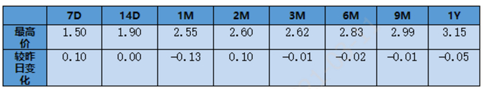 今日资金面延续宽松态势。早盘银行融出积极,隔夜宽松。非银质押高等级信用债7/14d ofr报在2.0-2.05/2.25%附近,并大量成交。早盘过后,7d稳在2.0%附近并未继续下探,14d则小幅下行至2.2%附近。21d跨季需求旺盛,质押信用债主要成交在2.7-2.8%附近。午盘后,市场延续宽松态势,偶有减点隔夜融出,各机构轻松平盘。