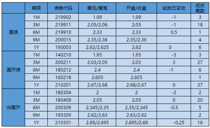 今天短利率交投一般,收益率小幅下行。基金继续买入半年内品种。