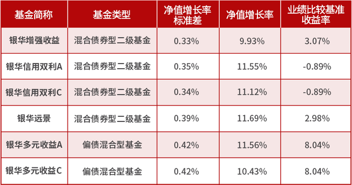 银华旗下基金经理贾鹏就是一位典型的风险控制能力领先的掌舵人之一。贾鹏表示:“我们并不看重短期排名和短期收益,而是追求长期年化复合收益,实现净值长期的上涨。”从标准差指标来看,贾鹏管理的“固收+”产品的波动率是非常低的。