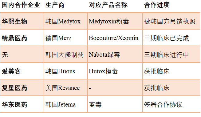 有利益的地方就有江湖,已经有很多生产商正摩拳擦掌欲进军中国肉毒素潜在市场,并与中国医药企业进行合作,共同完成国内注册申报审批流程。据国家食品药品监督管理局数据,目前在我国报批的肉毒素产品中,审批进度最快的是精鼎医药合作的德国西马肉毒Merz,二者均已完成最耗时的III期临床试验。相信在不久的将来,肉毒素市场也会出现同如今玻尿酸市场一样百花齐放的局面。