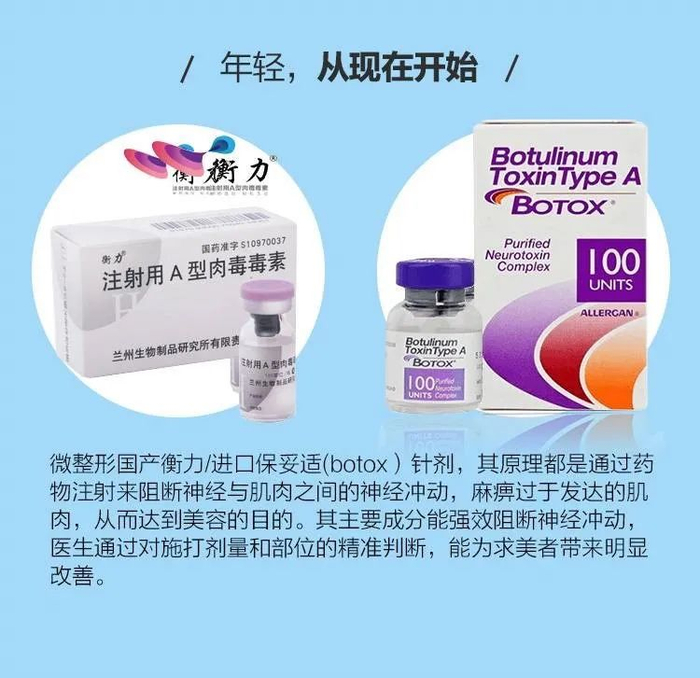 在本系列上篇文章中提到目前轻医美项目中药物注射最受欢迎,本文就主要跟大家唠唠另一种火热程度仅次于玻尿酸注射的项目——肉毒素注射。肉毒素注射可以说是让25岁以后的女生心生喜又生惧的项目,一方面,经受过岁月洗礼的女性通过注射肉毒素可以抹平被岁月亲吻的痕迹,雕塑面部、腿部、肩部线条;另一方面求美者会担心肉毒素注射不当造成面部肌肉僵硬,适得其反。