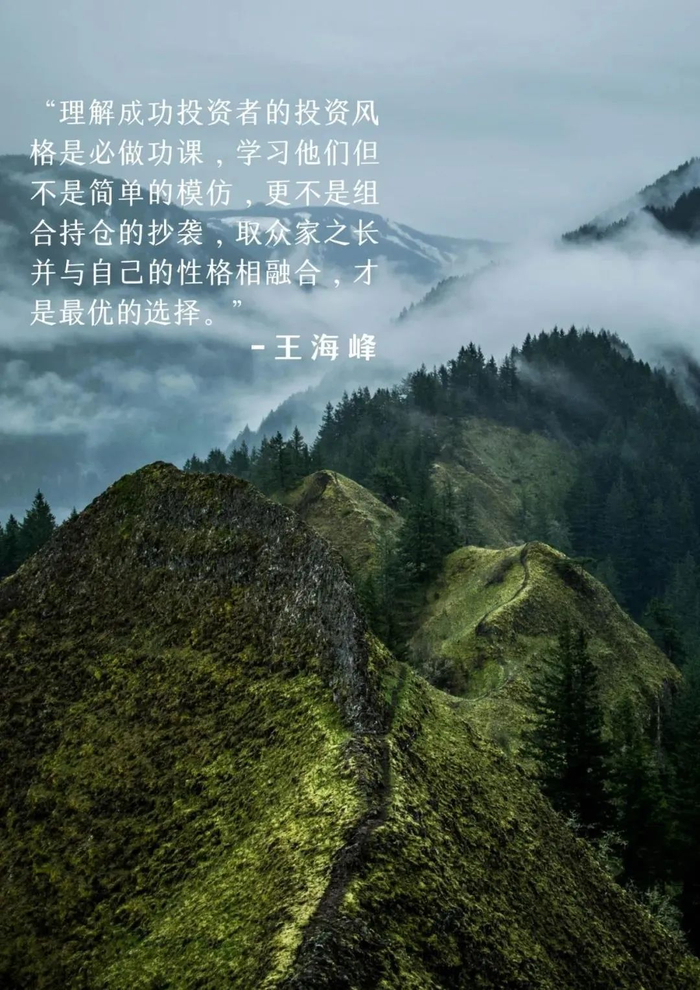 周末往往是他最忙的时候,我们了解到王海峰关注的自选股较多,且根据重要性和时效性有多个档次的分类,复盘跟踪是每周必备动作;持仓行业众多但确保每只股票均有应对行情变化的预案,足见其做事周详绵密,快速掌握要领;他享受投资成果带来的快乐,也不会因为失败的操作耿耿于怀,因为不同声音总是存在,他会带着开放的态度去寻找原因,确保下次不犯同样的错误。