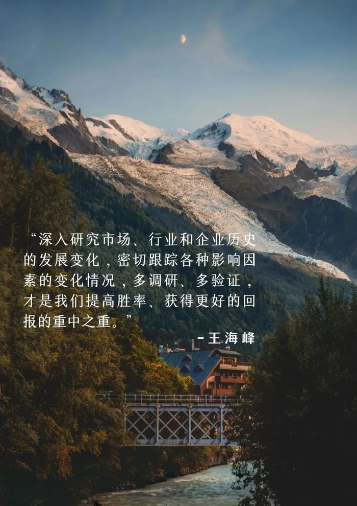 股价变化受企业盈利和估值两个重要因素影响。估值的研究也倾注了王海峰较大的精力。他会对历史上不同市场环境下该类行业、风格以及公司估值变化进行回顾和总结归纳,并结合当下的情景,对于估值变化做出自己的判断。估值不可能永远的扩张,再好的东西也有个价格,以合适的价格买入优秀的公司,才是最优的选择。因此,王海峰一再强调基本面和估值两手抓两手都要硬。