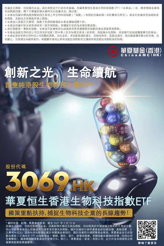 华夏香港再推全新震撼生物科技主题ETF 3069.HK 2021年3月18号