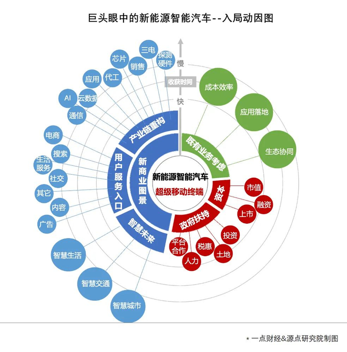 为了方便理解,从巨头入局动因上来看,当中的大理想与小心机基本上可以在上图中找到。其中,真正有远见、愿意坚持长期价值的有之,为了讲资本故事、贪图热钱和政策利好的也不在少数。
