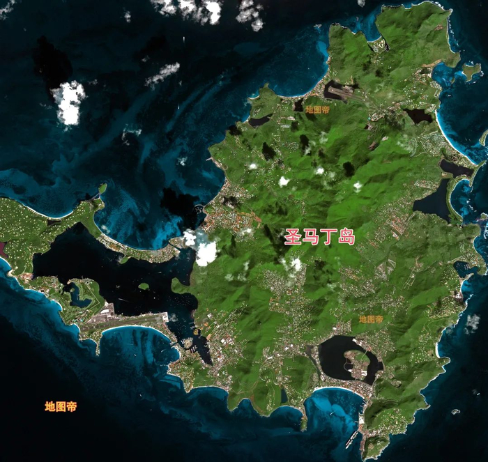 圣马丁岛位于加勒比海东北角,距美国的波多黎各岛约300千米。圣马丁岛面积约87平方千米,放在我国约排在第15位,比厦门岛小,比香港岛大,挤在加勒比海背风群岛中间,属于那种不用放大镜基本找不着的地方。