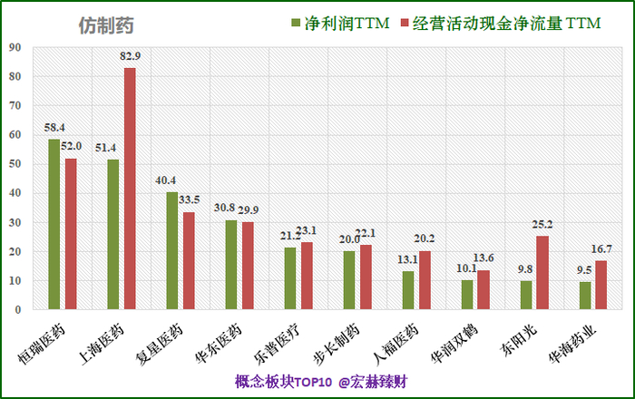 目前A股涉及“仿制药”概念的上市公司共有38家,部分财务指标前十如下: