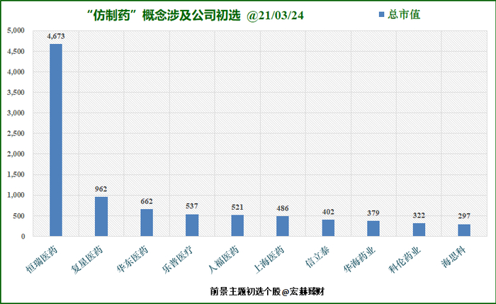 当前“仿制药”概念涉及公司市值三甲: