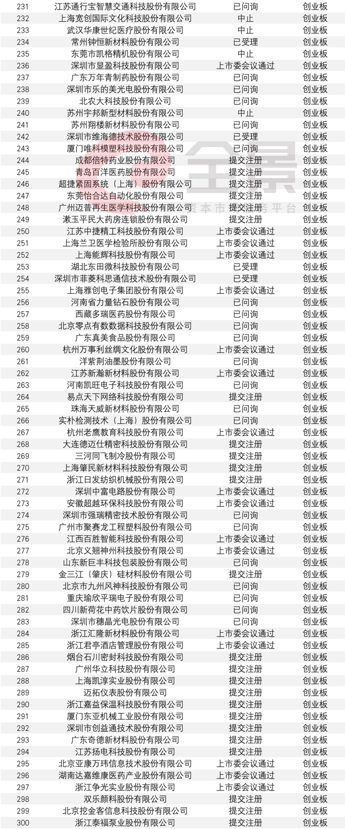 注:带“*”为西部12省区市及比照执行的地区首发在审企业。(上述表格已剔除终止(撤回)、注册生效、未通过、不予注册、终止审查等企业)