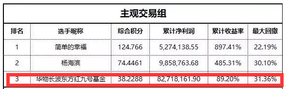 在某期货大赛上,徐长波操作的“华物长波东方红九号基金”获得主观交易组第三名。