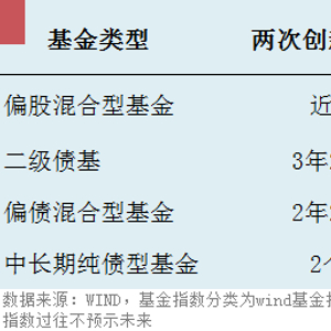 我们统计了不同类型基金自2015年6月高点到下一轮高点的间隔时间,按照创新高间隔市场排序如下: