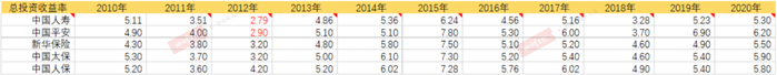 本着上述的标准,我们一起来看一下五大保险公司历史投资收益率表现。
