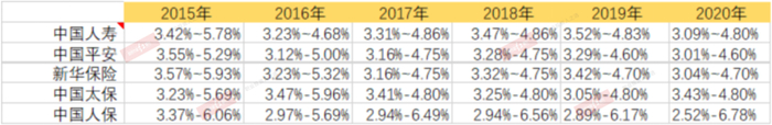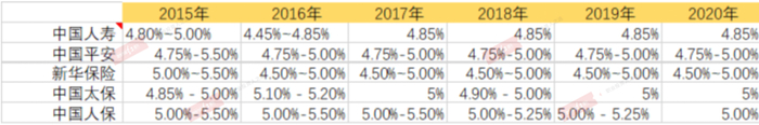 不同保险公司使用的准备金折现率存在差异,跟不同保险公司的产品策略密切相关,实际体现不同保险公司之间的竞争战略,当然也有不同保险公司对于未来风险的考量高低,通常保险公司只披露大致的利率区间。