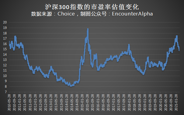 在经历了市场回调以及2020年年报、2021年一季报的披露之后,当前沪深300非周期指数的市盈率估值回落到了2020年10月份前后。肉眼可见,这一估值仍高于历史均值,但是从市场情绪的快速变化以及沪深两市的成交额急剧缩量来看,持续下行,完全步入熊市应该是概率不大的事情。