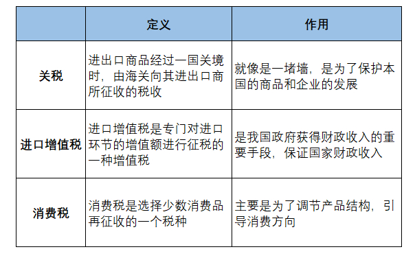 图表 1 关税、进口增值税、消费税的定义与作用