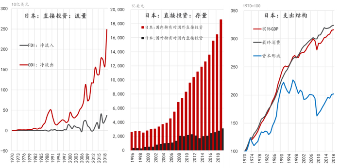 结果就是,日本在海外的产能迅速扩张。日本海外分支机构销售额占所有跨国公司销售总额的比重高达45%,占全日本公司销售额的比例近30%。简单理解,日本在海外又建造了“0.3个日本”。假如这些投资发生在日本境内,便能促进资本形成,增加就业岗位,提高劳动者收入,提升有效需求,也能有效缓解通缩压力。当然,三星和丰田等跨国公司巨头可能也很难取得今日的世界地位。
