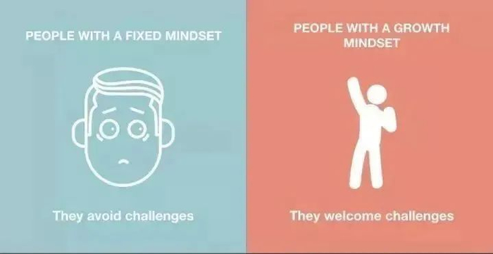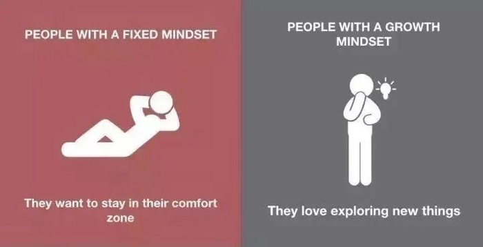 固定思维:喜欢呆在舒适区中。| 成长思维:喜欢探索新事物。