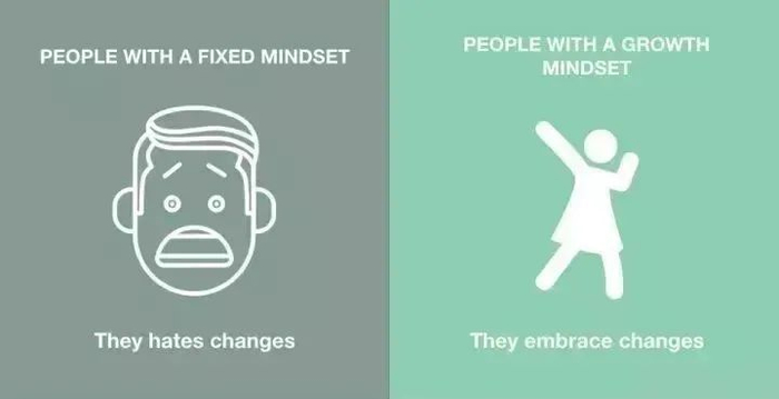 固定思维:痛恨变化。| 成长思维:拥抱变化。