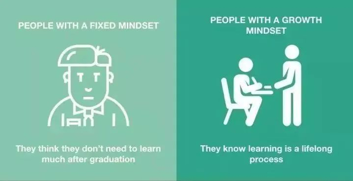 固定思维 :认为毕业后无需学习。| 成长思维 :学习是终身事业
