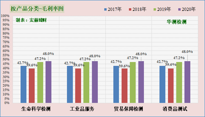 从四大业务板块的毛利率来看,贸易保障检测毛利率较高,过往10年毛利率维持在60%-70%的水平,消费品测试毛利率近两年稳定在50%左右,生命科学检测毛利率有波动,2019年触底回升,目前毛利率接近50%;工业品测试毛利率波动较大,2017年下滑至24.64%,主要原因是前期收购子公司华安无损检测业绩不达预期所致。