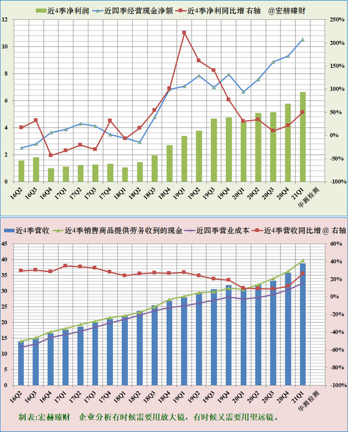 净利润含金量高,营收含金量高。经营现金净额持续处于净利润之上。营收整体呈现增长态势。