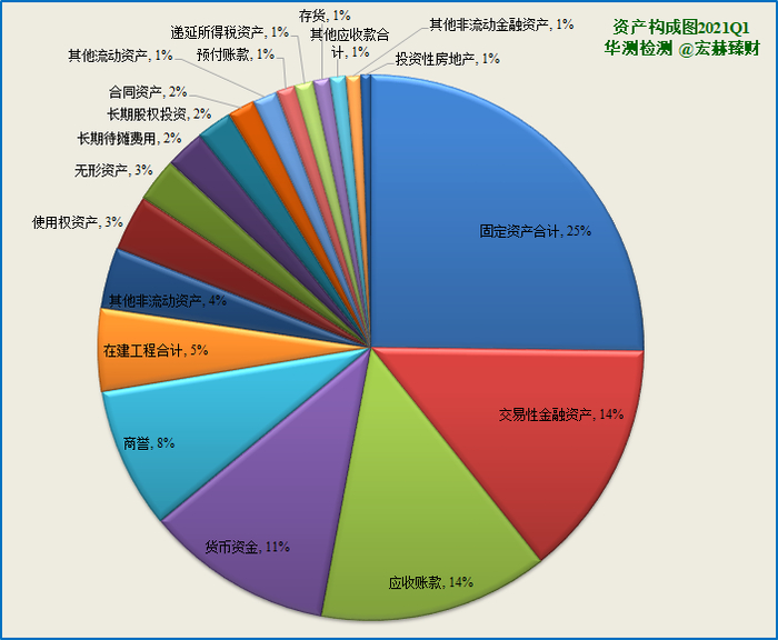 华测检测有形资产占总资产比例【55%】,无形资产+商誉占比【11%】。