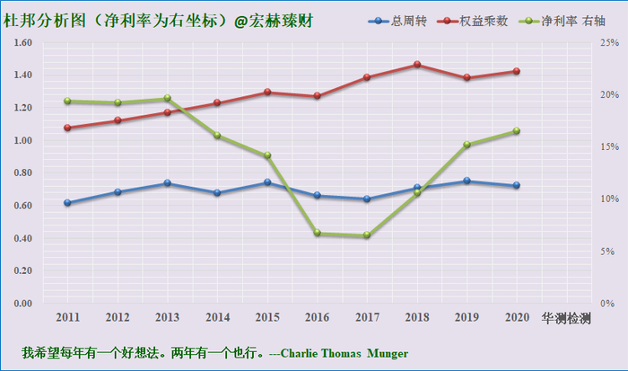 宏赫臻财建议关注未来杜邦指标趋势呈现:【低杠杆或适度杠杆(1.2-3)+周转率接近或大于1且有向上趋势+稳健增长的中高净利率>15%】