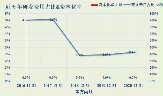 2020年末研发费用:4.6亿,占营收比:2.1%,资本化率:0.0%