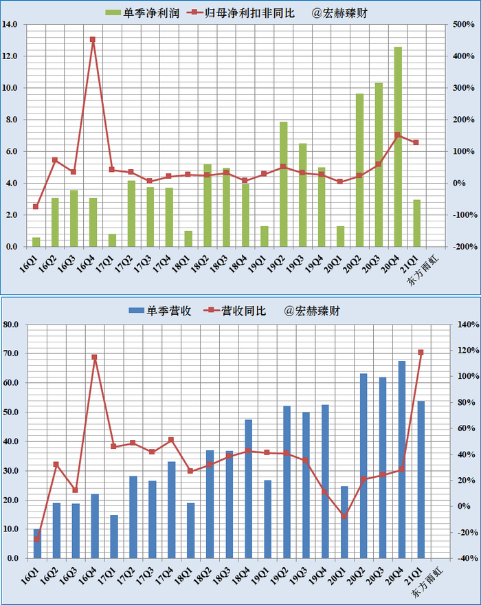 单季度净利润、营收及增长率趋势图