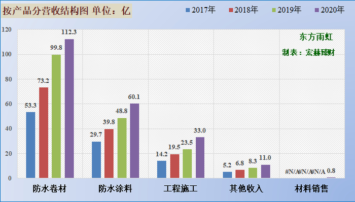 2020年公司防水卷材实现收入112.33亿元,同比增长12.56%,增速较上年有所放缓;
