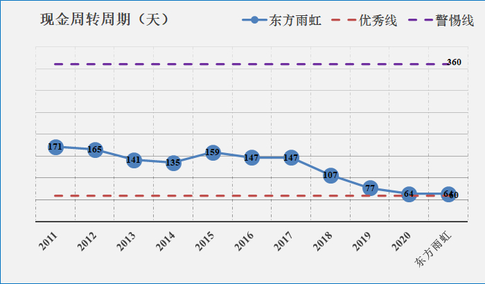 公司现金循环周期指标自2018年起显著提升,当前逐步处于优秀线位置。
