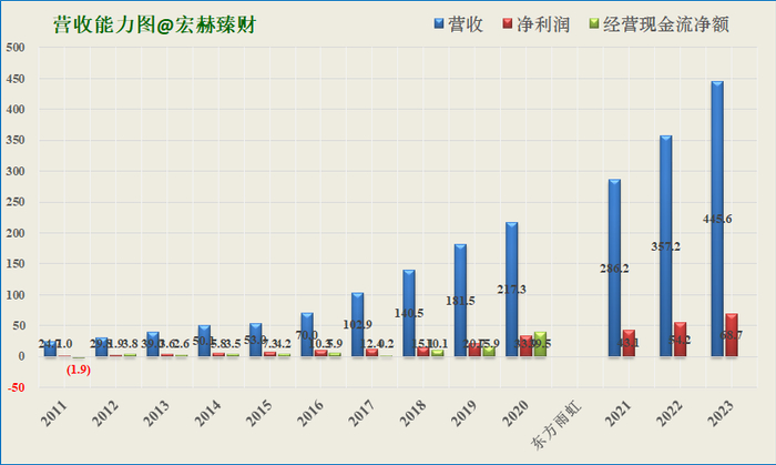 近年营业收入、净利润、现金流及未来三年预测图