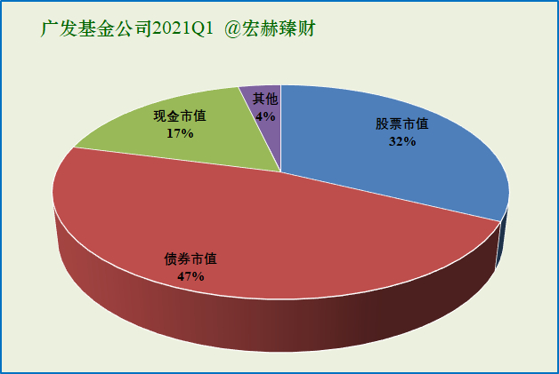 广发基金公司管理股票市值居行业前端,也比较注重股权投资尤其是主动管理型投资类别,是当前公募基金中股票类别值得关注的公司之一。管理股票市值占比32%;债券市值占比47%。
