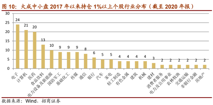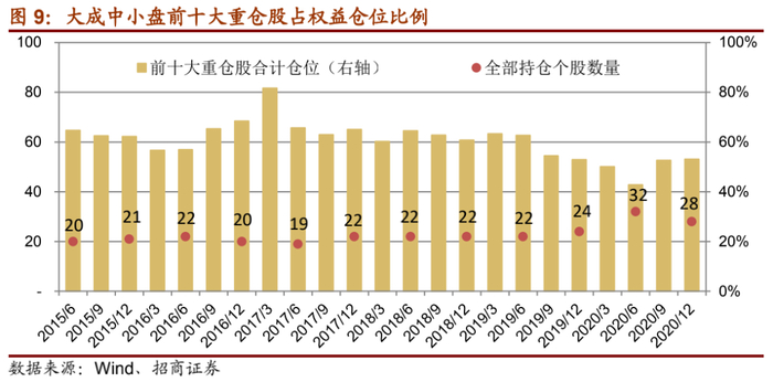 从历史年报/半年报披露的全部持仓数据来看,过往大成中小盘持仓占比1%以上个股在20-30只左右,重仓股适度集中。