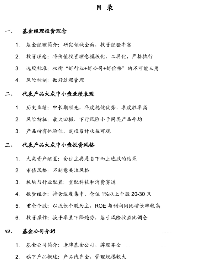 代表产品大成中小盘投资风格
