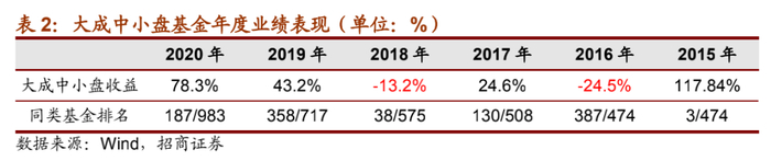 代表产品大成中小盘业绩表现