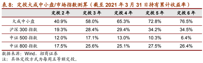 从定投收益来看,过往中长期定投大成中小盘累计收益也远超定投宽基指数收益。