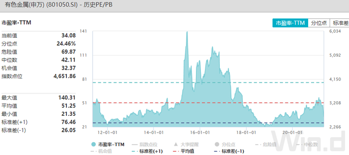资源股指数基金当前规模过亿元的共18只,三只有色主题基金规模最大,其中南方中证申万有色金属ETF以58.7亿元居首。以其跟踪的申万有色金属指数估值看,截止5月7日,市盈率为34.1倍,处于近10年24.5%分位,也就是近10年有超过四分之三的时间段估值高于当前,估值仍具吸引力。