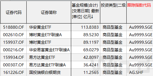 商品型基金投资于商品实物资产,主要包括贵金属主题基金,以及商品期货主题基金。得益于近一年黄金白银价格大幅上扬,贵金属主题基金规模迅速扩大,易方达黄金联接A、博时黄金ETF联接A自2019年底至今年一季度末规模均翻倍。当前市场上规模超10亿元的贵金属主题基金有如下7只。
