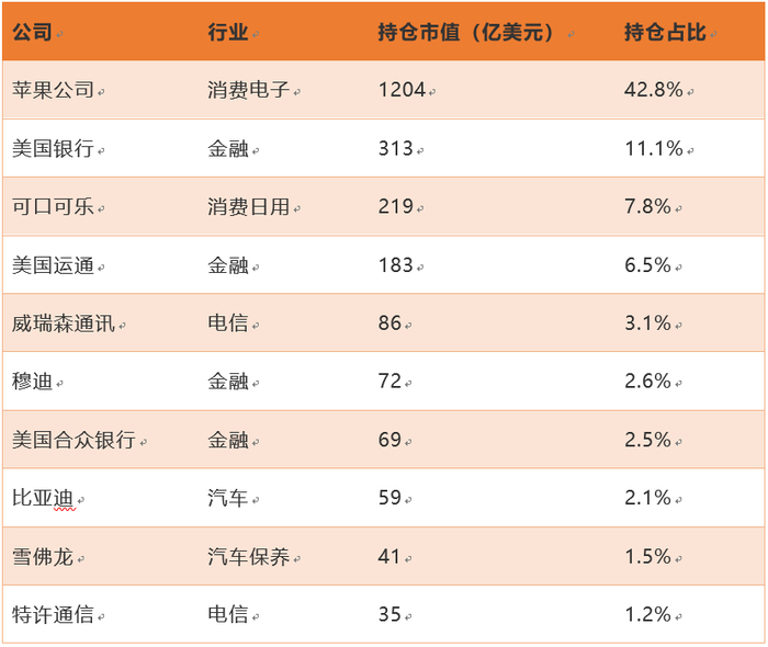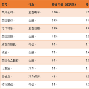 从巴菲特的持仓来看,他十分钟爱消费和金融两个行业。截至2020年12月31日,伯克希尔哈撒韦公司前十大持仓股中,有4家金融公司,剩下6家都属于大消费类别。苹果公司属于电子消费品,市值占全部持仓的43%;可口可乐属于日用消费品,持仓占比7.8%;威瑞森和特许通信是电信消费,比亚迪和雪佛龙是汽车和汽车保养消费。