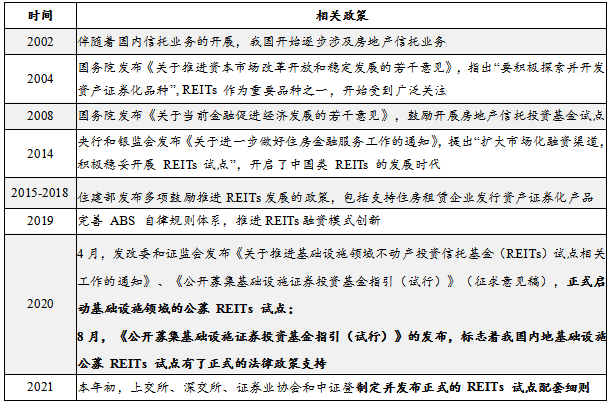 我国官方层面对于REITs的研究可以追溯至2001年,在随后的近20年中,房地产政策的变动客观上影响了REITs的发展进度。2020年4月,发改委和证监会共同发布《关于推进基础设施领域不动产投资信托基金(REITs)试点相关工作的通知》,以基础设施REITs的形式推出了试点文件,我国公募REITs制度与市场建设正式拉开帷幕。推进基础设施REITs的重要意义包括深化金融供给侧结构性改革、盘活存量资产、降低债务杠杆、促进储蓄投资转化和完善多层次资本市场。