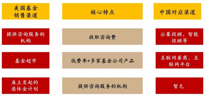 实际上,在美国主要可以通过三种渠道购买基金产品,分别是基金投顾机构,基金超市和雇主发起的退休金计划,而这三种渠道中的第一种和第三种,基本全程都有基金投顾的介入,而第二种也有基金投顾的服务提供,可以选择。