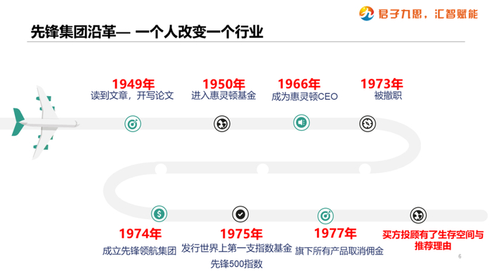 关于第一点,其实对于美国当时的环境而言,肯定也会有人有这样的疑问,为什么先锋领航集团及其创始人约翰博格先生要去做这件自我革命的事情呢?为什么是他,为什么要在那个时候就开始降费,免佣,貌似要与赚钱过不去,要与整个行业“为敌”呢?